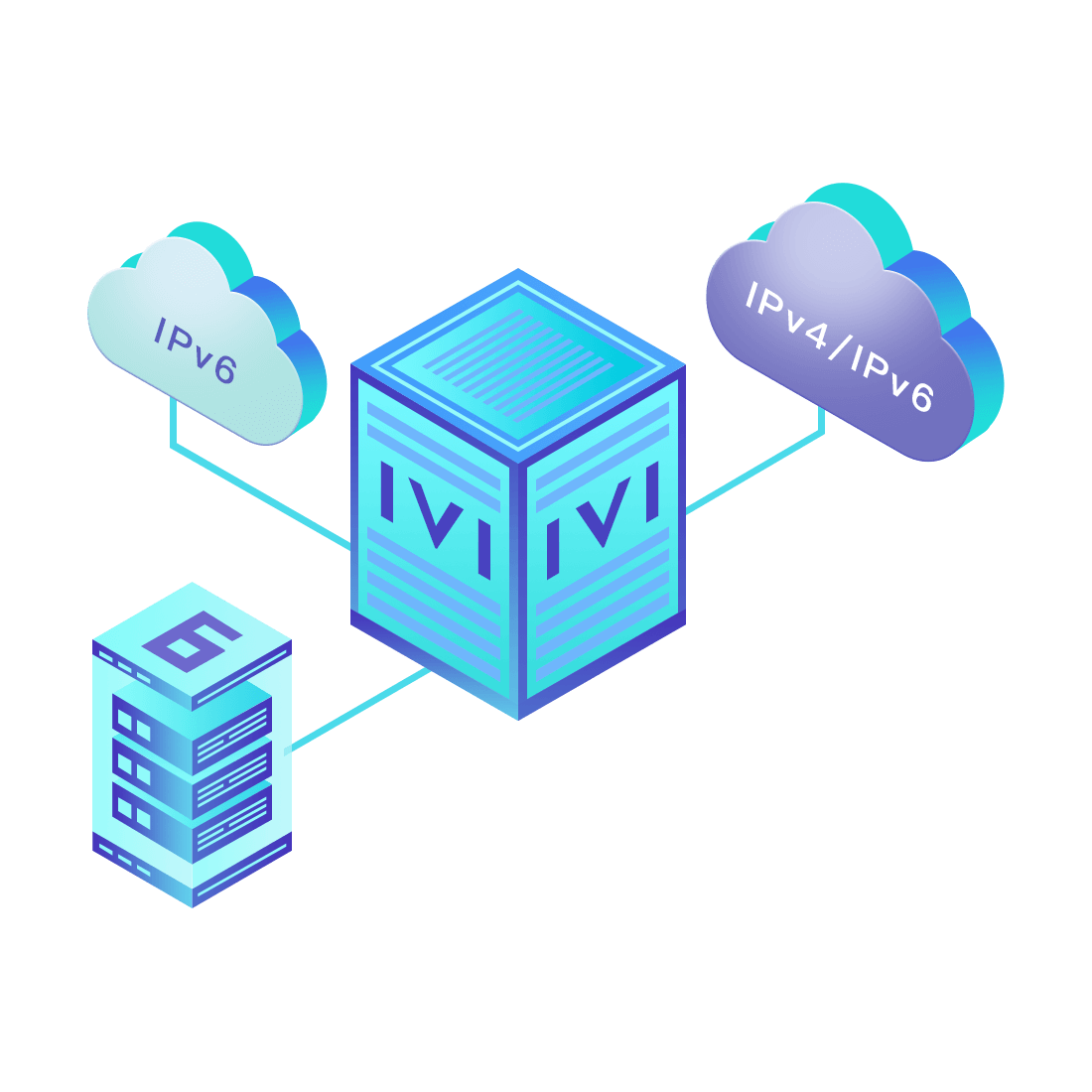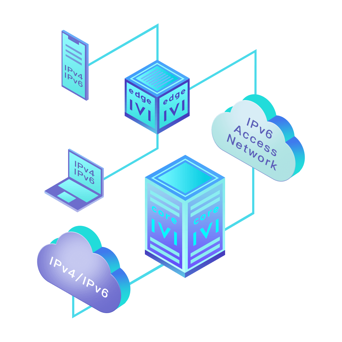 對正在進行IPv6整體升級規(guī)劃的運營商,應(yīng)用IPv6升級方案2.5,通過IVI無狀態(tài)翻譯技術(shù)和純IPv6接入網(wǎng)絡(luò),為雙??蛻舳撕碗p棧服務(wù)器提供連通服務(wù)。